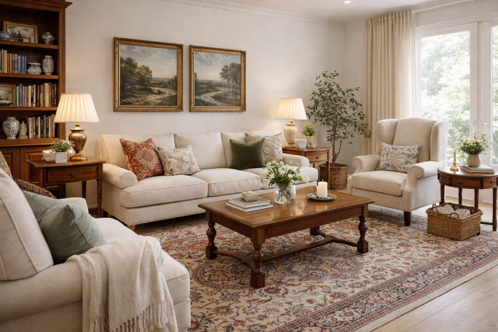 Der traditionelle Einrichtungsstil steht für Beständigkeit, Wärme und zeitlose Eleganz. Er greift auf bewährte Gestaltungsprinzipien zurück und schafft Räume mit Charakter, Tiefe und handwerklicher Qualität. Im Mittelpunkt stehen harmonische Proportionen, klassische Formen und eine ausgewogene Raumaufteilung, die Geborgenheit und Ordnung vermittelt. Farben sind meist warm und natürlich – etwa Creme-, Beige-, Braun- oder gedeckte Grüntöne – und werden durch feine Kontraste ergänzt.